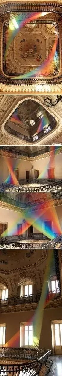 墨西哥艺术家Gabriel Dawe的室内彩虹装置。