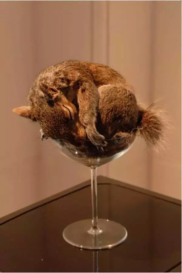 Polly Morgan将动物标本置于一个带有故事性的情境中,整个系列装置直白、冷静,充满现实以意味又能引发人们的思考。