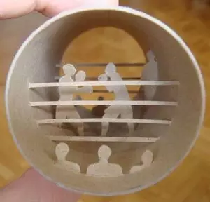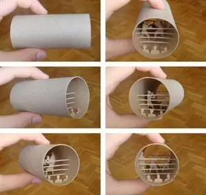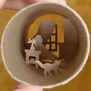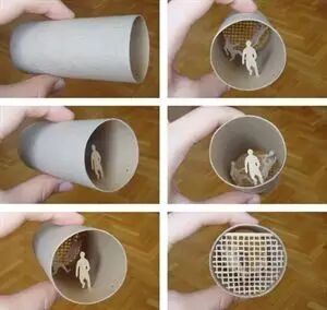 他把这些手纸筒做成了手工艺术品☟
