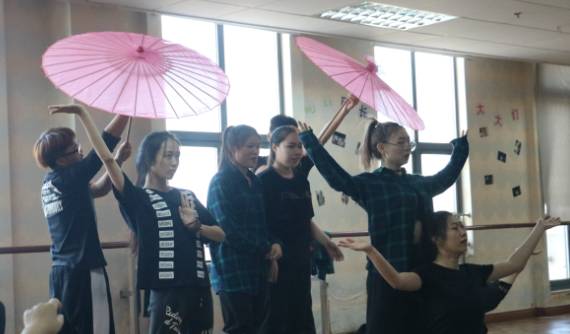 舞团的成员们舒展身体,以一副副优美的身躯勾画动人之姿。身影交错在落地镜前,迎合着音乐的鼓点挥动双臂,舞动身躯。