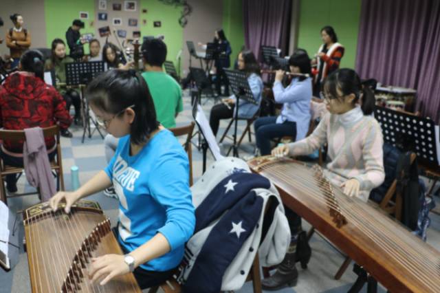 一曲激扬的民乐合奏回响在学活508。四架古筝,两把二胡,提琴一把还有排鼓与电子琴的合奏为我们带来了一首翻新的民族音乐。民乐团的成员们在指导老师的点拨下,一次一次的从头来过,一节一节的纠正改善,艰辛的排练过程意味着精彩无比的演出。
