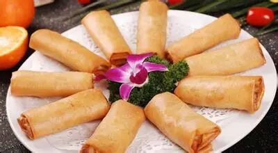 春卷也叫春饼,立春吃春饼是中国一种古老风俗。晋代已有“五芋盘”即“春盘”,是将春饼与菜同置一盘之内。春饼发展到今天,形制随地而异,食用时间也因地而别。有烙制、也有蒸制;或大如团扇,或小如荷甲。