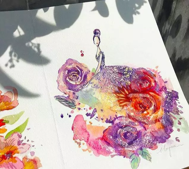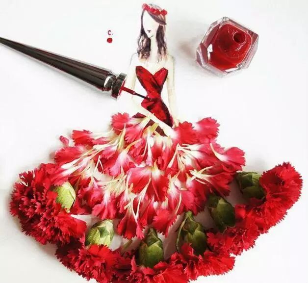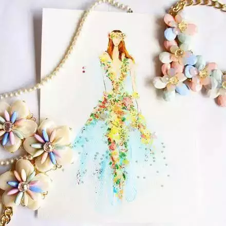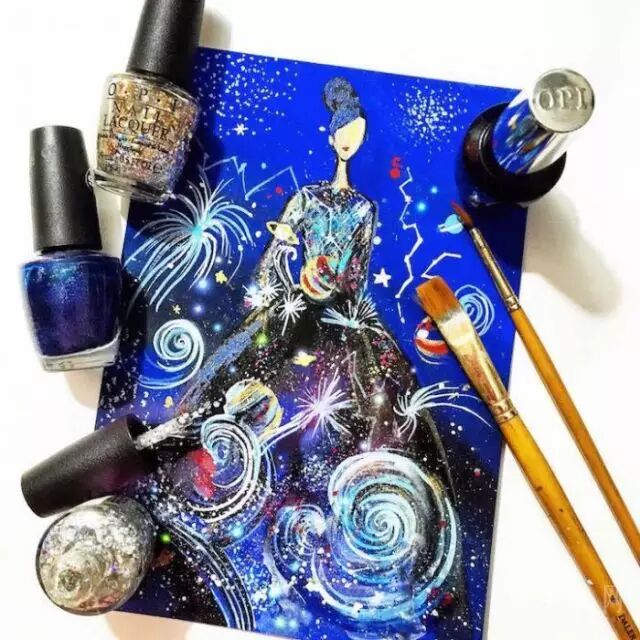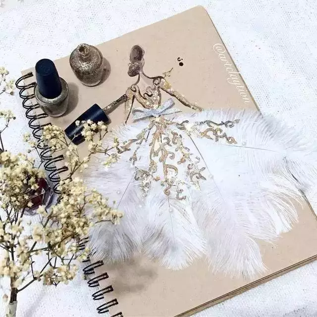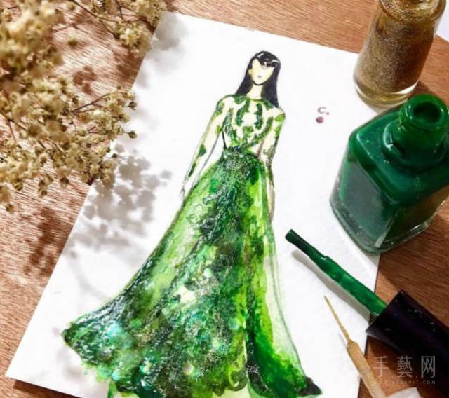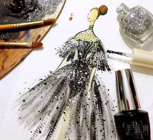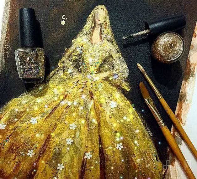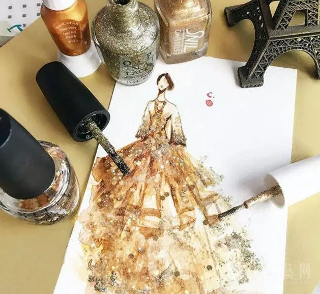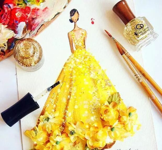 来自“Artclaytion”的艺术家Chan Clayrene混合指甲油和其他材料一起为我们创作出惊人的服装画作品。她的灵感来自于一些高档的时尚品牌如Dolce & Gabbnna,Valentino和Ralph & Russo,当然也包括她自己的绘画灵感。