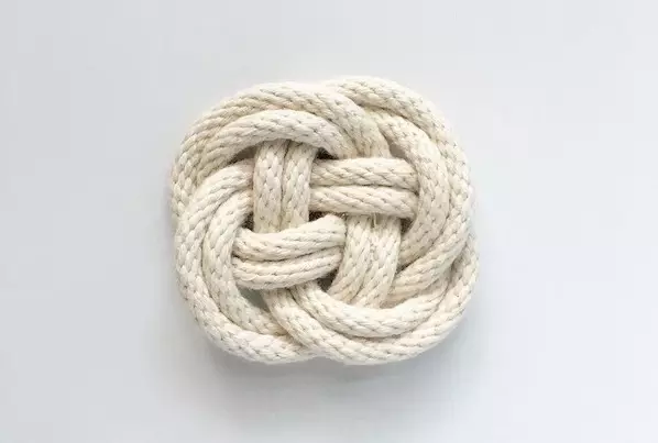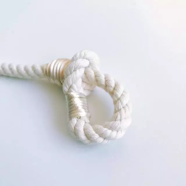 绳结是一种新的语言,打每一个新结的时候就像在学习字母表里的一个新单词。字母和单词都来自于话语,而话语构成了沟通,所以,打结对我来说,是一种沟通和交流的心的语言。就像作家丽贝卡索尔尼说:无声的物质世界,转化为生命。