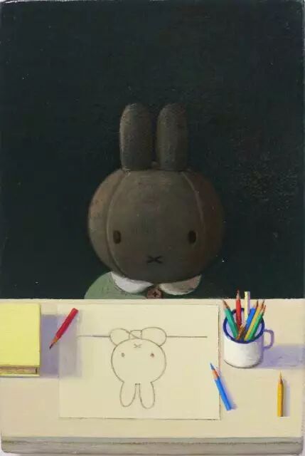 一眼就觉得这面无表情的米菲兔简直就是自己的翻版。从那之后,米菲开始出现在刘野的画中。