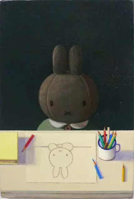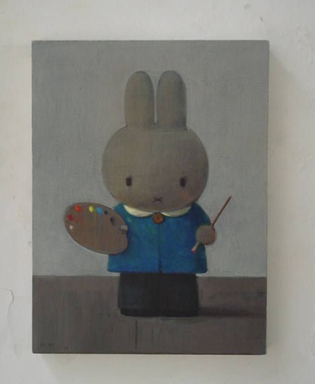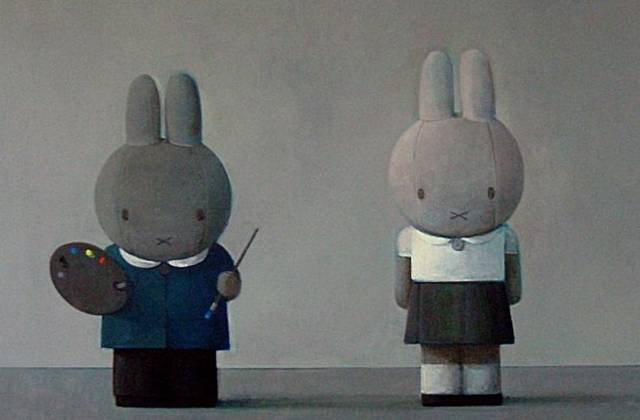 刘野的好,得到了一定岁数才会懂。在刘野的很多作品中,都可以看见米菲兔的形象。