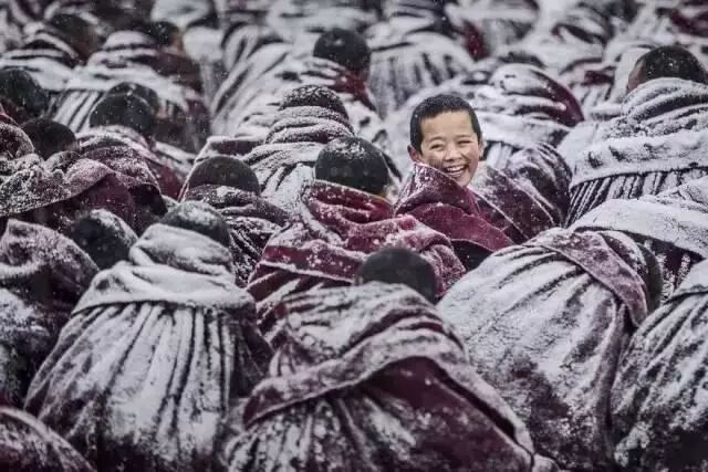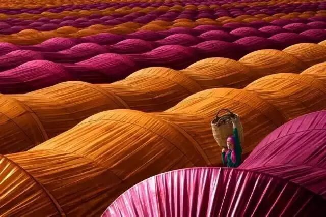 14.缅甸一间寺庙里正在打扫佛像的和尚