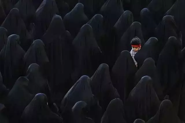 10.巴林穆斯林妇女带着她的儿子参加葬礼