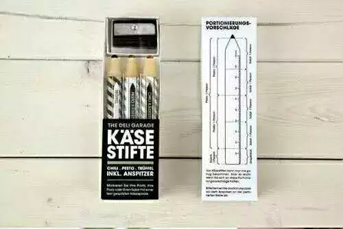德国Kolle Rebbe广告公司,把奶酪做成了一支支铅笔的模样.铅笔笔芯则由香蒜、辣椒、松露制作,代表三种口味的奶酪,削好的奶酪可以撒在菜上,用起来方便又有趣。
