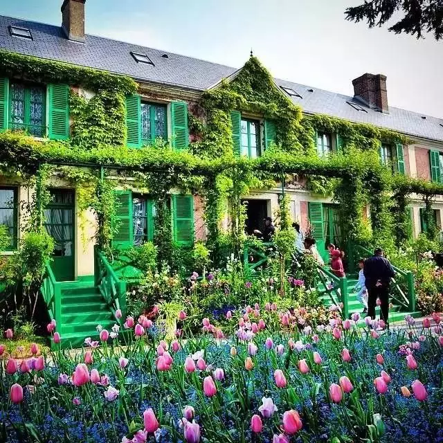 从巴黎乘车一路向西,在大约 45 分钟的走马观花后,会抵达一个绿树成荫、风光旖旎的吉维尼小镇。在这个塞纳河畔的小镇上,有一处二层楼房,唯美至极。