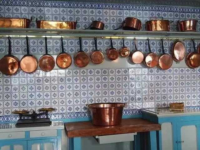 莫奈生前用过的厨具保留至今,铜色的金属质感和花纹墙壁静静相守百余年。而另一间较大的餐厅则用来招待客人,堂皇的灯光之外,隐约可见少年落魄的莫奈,在中年之际生活开始变得富足。