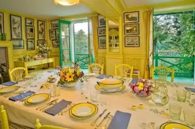 莫奈的家,不仅是卧室、书房、客厅、洗漱间,就是餐厅和厨房也是欣赏鲜花的绝妙之处。在这里,打开每扇窗,都可以见到迷人的景色。所有的门窗都被主人认成了悦目的绿色。