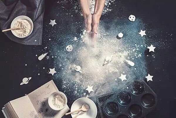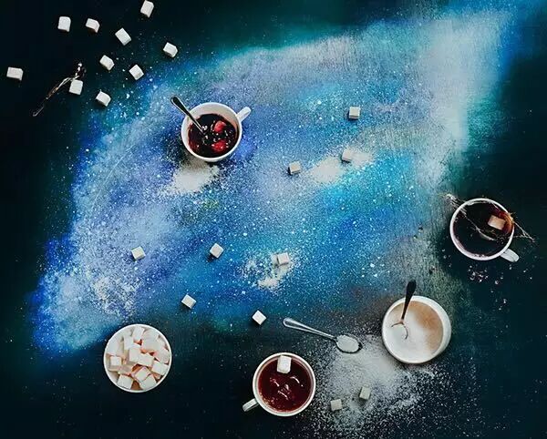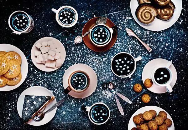她依旧利用常用的曲奇饼干、甜甜圈与咖啡作为主要创作对象,为大家献上了一部美食界的《星际漫游指南》。方糖漂浮在浅蓝色的星云之上,星星编织成的网是所有女生美好的梦。