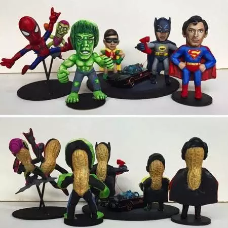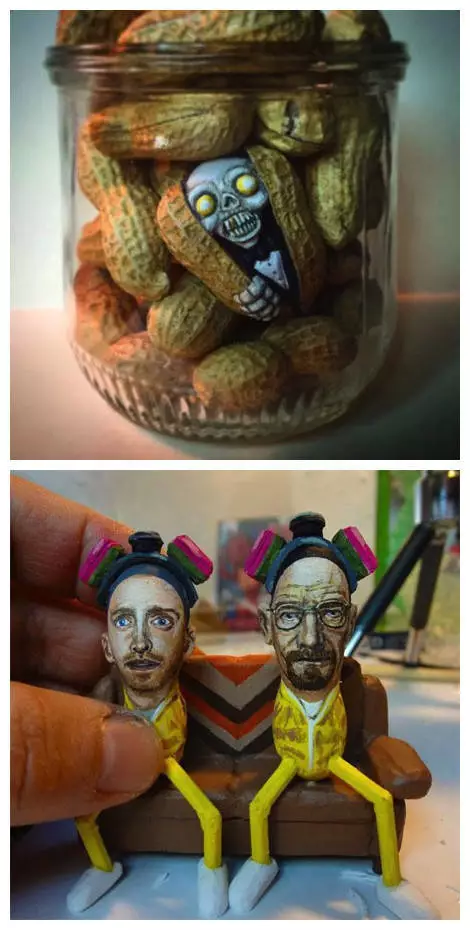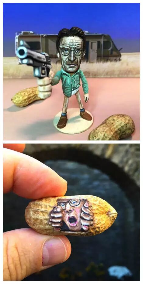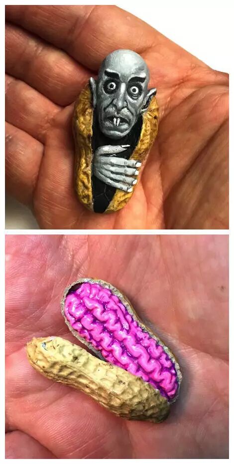 外表不怎么上相的花生壳在艺术家笔下却拥有了另一种独特风格,或搞笑或恐怖,别开生面。