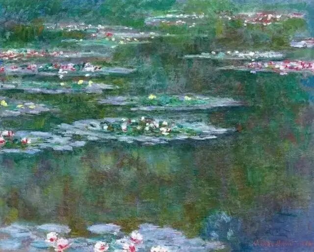 在法国印象派画家中,莫奈无疑是一位最有标志性意义的艺术家。他高产的“睡莲”等系列,为后人留下了一份沉甸甸的美术史遗产。在那变化莫测的绿色水面上,反映着天空和池塘岸边以及在那些倒影上盛开着清淡明亮的睡莲。