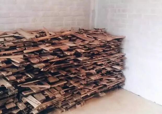 Steshak 的原材料基本是被风吹倒的树干,摘果剩下的树枝,以及一些朋友带来的木材,最终他一共收集到了大约四十袋木片。