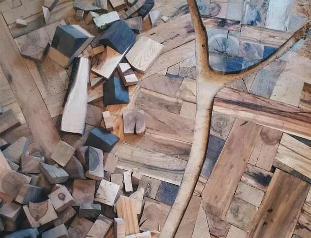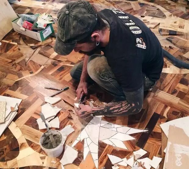 这个充满艺术性的拼装木地板,是一位名为Alexey Steshak的室内设计师打造的。