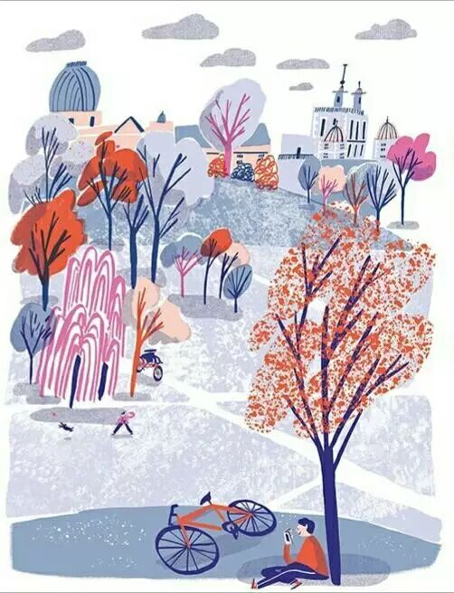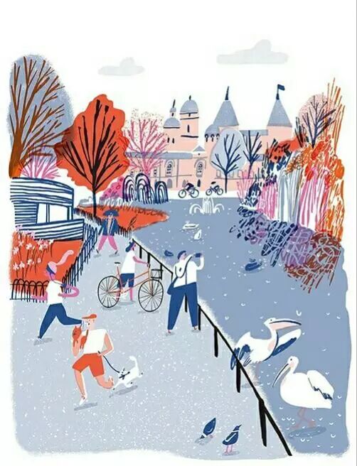英国插画家Hannah Warren经常骑自行车漫游伦敦,从不同角度欣赏城市风景,并描绘一系列色彩缤纷明亮、复古可爱的图像,纪录日常生活的点点滴滴。