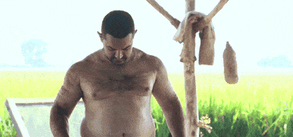 在拍完80%的肥胖戏份后,他在五个月内必须“瘦身成功”。但别说练习摔跤,就连弯腰穿袜子这样的小事,都能让他停下粗喘一阵子。这样的自讨苦吃,对于52岁的阿米尔来说也许是逆天而为,可这就是他理解中的“天命”,只有通过角色去体验不同的人生,只有拼劲全力地用心演绎,才能打动观众们。