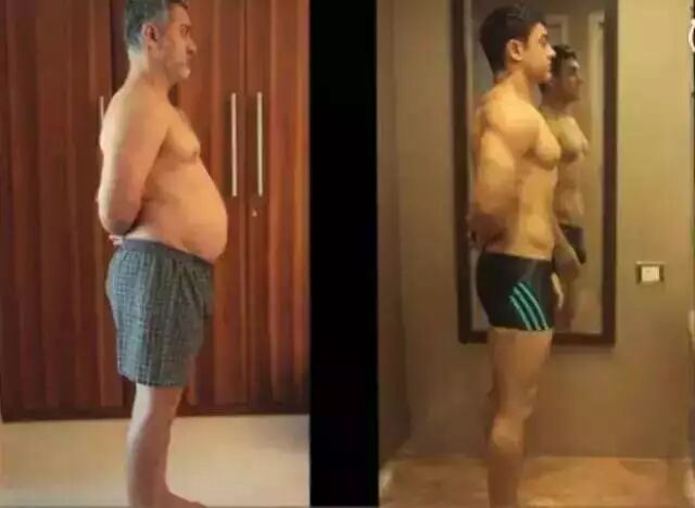 为了演好这部电影,52岁的阿米尔汗勇敢的选择了挑战自我,把自己的体重暴增至97公斤,然后狂减25公斤。因为在电影中,阿米尔一人要饰演主角的三个人生阶段,19岁,29岁,55岁。从稚嫩的少年、健壮的青年再到肥胖的中年,容貌与身材,跨度相当大。