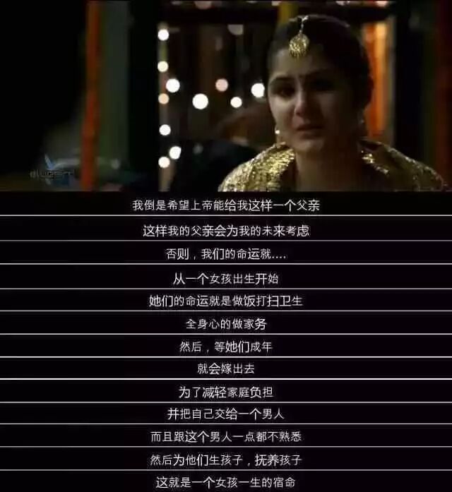 再回到这部电影当中,众所周知印度的女性地位在世界上是最低的国家之一,这也源于这个国家的宗教、历史和传统文化带来的影响。电影里14岁就要出嫁的女孩说出了真相↓